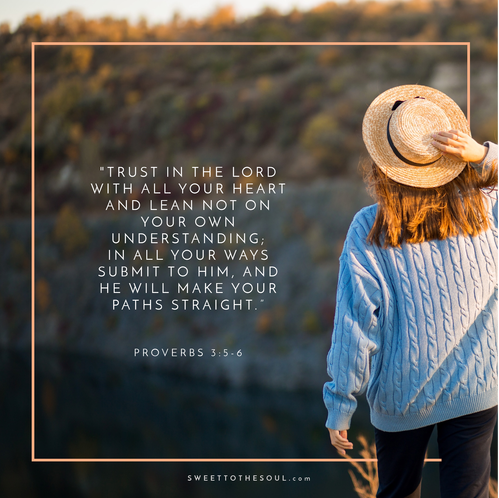 "Trust in the Lord with all your heart and lean not on your own understanding; in all your ways submit to him, and he will make your paths straight.” Proverbs 3:5-6