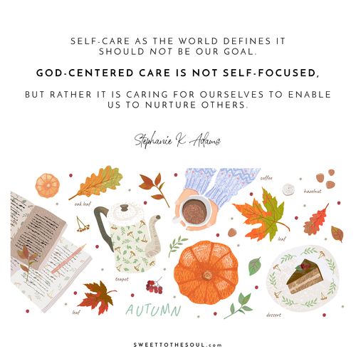 Self-care as the world defines it should not be our goal. God-centered care is not self-focused, but rather it is caring for ourselves to enable us to nurture others.