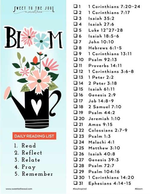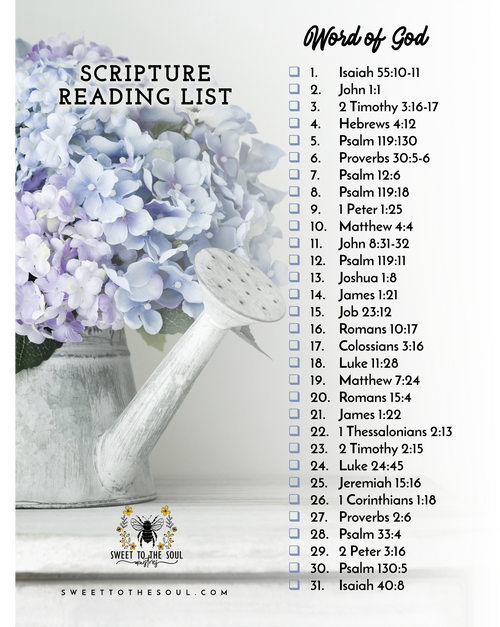 Scripture Reading Lists serve as a great starting point for your Bible Study / Reading or Scripture Writing. Each of our lists feature 31 topical Bible Verses so they can easily be used as a daily reading guide for a full month, any month. Follow along with our monthly topic online or choose a topic of your personal preference.