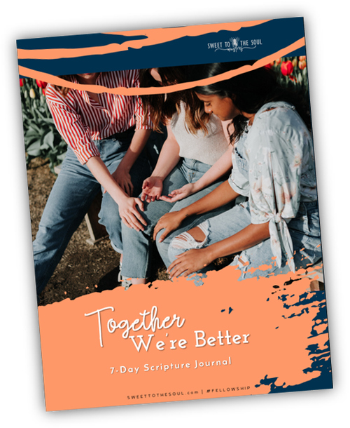 "Together We're Better" Scripture Journal is a free printable 7-day series featuring a daily Scripture reading and study journal pages for you to write about what God teaches you during your time in His Word. Additional resources include: