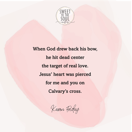 When God drew back his bow, he hit dead center the target of real love. Jesus' heart was pierced for me and you on Calvary's cross. A day of love. The most extravagant Valentine’s Day in history.