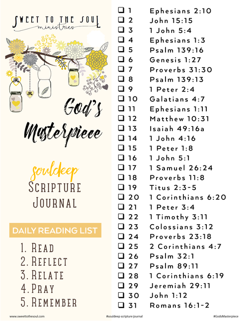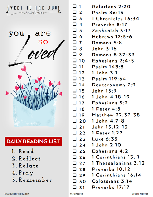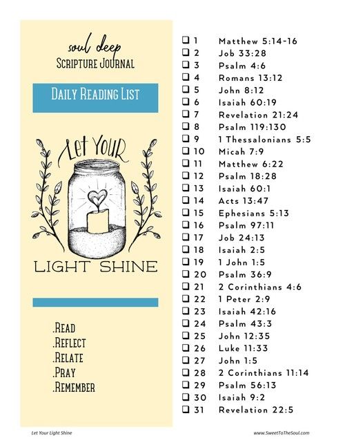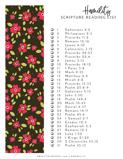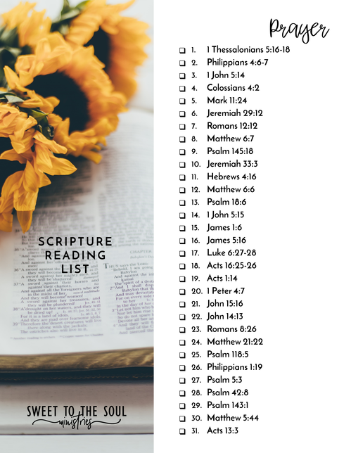 Scripture Reading Lists serve as a great starting point for your Bible Study / Reading or Scripture Writing. Each of our lists feature 31 topical Bible Verses so they can easily be used as a daily reading guide for a full month, any month. Follow along with our monthly topic online or choose a topic of your personal preference.